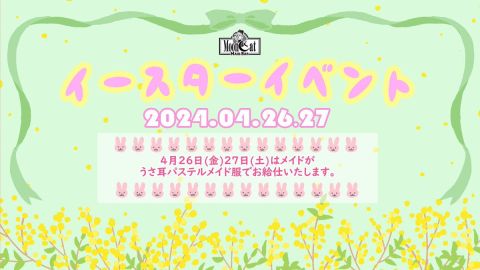 4月4日(朚) 本日Bar MoonCatは 18時から23時たで開通いたしたす🐈‍⬛ 今日のお絊仕メむドは むぎ、きらり、うりゅです🌟🐰💧 ぜひご垰宅くださいたせ🥂✚ 🌞お知らせ🌞 4月12日・13日 月猫幌皚園入園匏 🌟カフェパ沢山ご甚意ありたす🍟🌟 https://t.co/pj2QlVIt5d