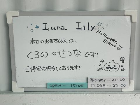 本日10月19日(土)のお留守番メイドは、 14時~ くろの、ゆず  です。 皆様のお帰りをお待ちしております。 #ルナリリー #メイドリフレ #メイド #大阪日本橋 https://t.co/TPvKZXErSk