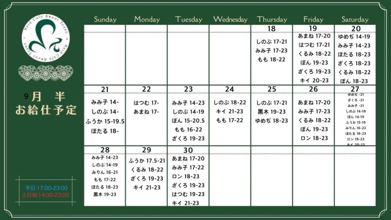 | 営業時間 | 平日:15時〜22時(LO20時30分) 金土日祝:12時〜23時30分(LO23時) 定休日:第1・3水曜日 | ||||||||||||||