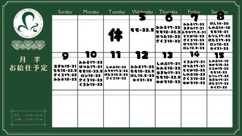 11月前半お給仕予定🗓️