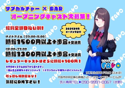 | 営業時間 | 平日 18:00〜24:00 週末 18:00〜5:00 | ||||||||||||||