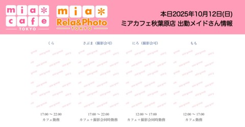 👑本日10月12日(日)のミアカフェ秋葉原店