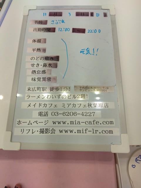 営業時間 ●ミアカフェ東京店(メイドカフェ)http://www.mia-cafe.com/ ● □平日 月~金 17:00~22:00 □土曜・日曜・祝日 12:00~22:00 ★定休日 なし(2019年1月より定休日廃止) □ラストオーダー 閉店の60分前  22:00閉店の場合→21:00ラストオーダー 営業日や出勤状況についてはこちら。 http://pandaland.cutegirl.jp/mif/c_cms_csv/sch_top.php ●ミアリラ&フォト東京店(撮影会&リフレ)http://www.mif-lr.com/ ● □全日 12:00〜22:00 ですがリラクゼーション出勤スタッフがいる時間帯のみ営業です。 ★定休日は不定休(出勤スタッフがいる時間帯の営業) □最終受付 閉店の45分前  22:00閉店の場合→21:15(21:50迄に施術時間が終わるコース) ※高校生不可 ●深夜営業については、公式サイト右上の http://market.chu.jp/schedule1/sche37.cgi ミアグループ総合スケジュール(PC・スマホ) http://market.chu.jp/schedule1/sche37.cgi?dm=1 ミアグループ総合スケジュール(ガラ携帯) をご覧ください。告知日のみ営業となります。告知日以外は深夜営業いたしておりません。 深夜営業対象日 22:00〜翌朝5:00(L.O.4:00)