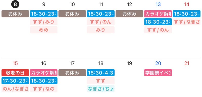 🎀écru9月𝗌𝖼𝗁𝖾𝖽𝗎𝗅e🎀 ◽︎9/2(火)…カラオケ解放デー🎤🎶 ◽︎9/6(土)…夏祭りイベント👘🎇 ◽︎9/13(土)…カラオケ解放デー🎤🎶 ◽︎9/27(土)…みり2周年&卒業イベント🎓💐 https://t.co/b0BUYgmxaf