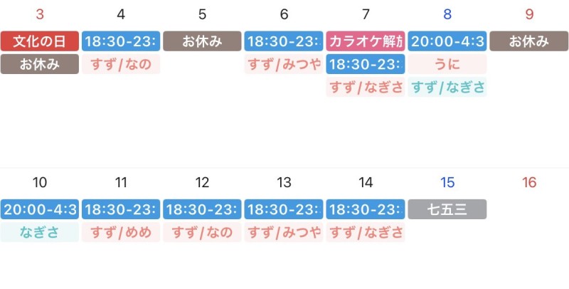 🎀écru11月𝗌𝖼𝗁𝖾𝖽𝗎𝗅e🎀 ◽︎11/7(金)…カラオケ解放デー🎤🎶 https://t.co/El2VAhUgiB