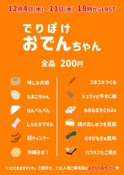 | 営業時間 | 18:00-24:00 | ||||||||||||||