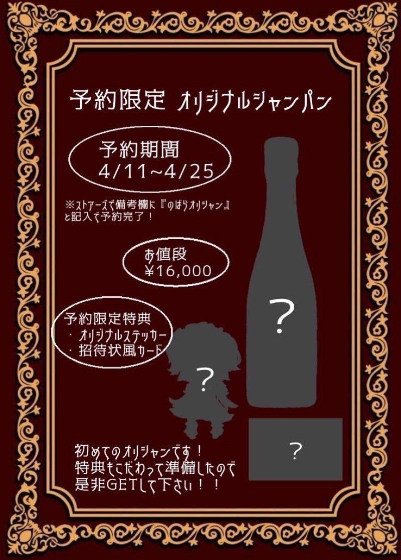 予約方法:遠隔オリジナルシャンパンの備考欄に「のばらオリシャン」と入力ください❣️