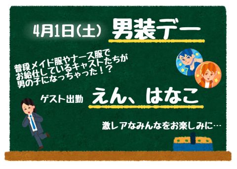 その日の出勤メンバーは全員男装❗️そしてなんと、ゲストとしてえんちゃんとはなこちゃんも出勤してくれます❗️