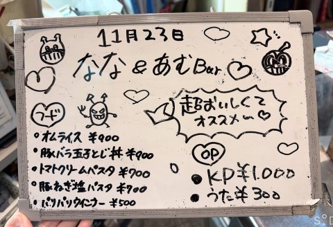 | 営業時間 | カフェタイム 12:00〜18:00(LO17:30) バータイム 18:00〜23:00(LO22:30) | ||||||||||||||