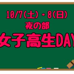 10/7(土)、8(日)★夜の部★女子高生DAY★