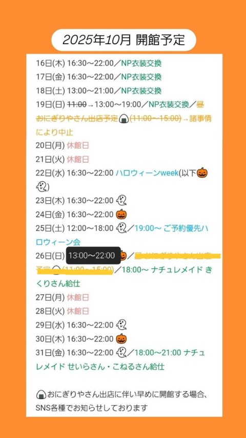 | å¶æ¥æé | æç« äŒé€šæ¥ïŒå¹³æ¥ 15:30ïœ22:00ïŒåæ 13:00ïœ21:00ïŒæ¥æ 13:00ïœ19:00 | ||||||||||||||