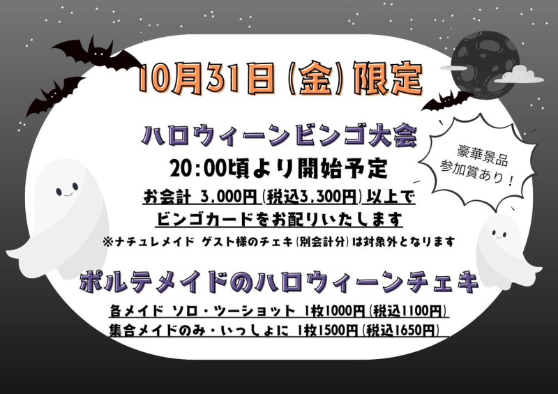 本日もありがずうございたした🌃 10月24日(金)は  ハロりィヌンweek⚰ 【 OPEN 16:30CLOSE 22:00 】 ・ナチュレ(@naturemaid_)×ポルテコラボ期間🫶(26,31 ゲスト絊仕あり) ・10/25 ハロりィヌン䌚 ご予玄受付䞭🎃🎉 明日も「 ただいた 」のお声を心よりお埅ちしおおりたす🏡 https://t.co/Z7tbxnNoOg